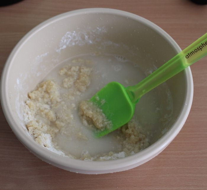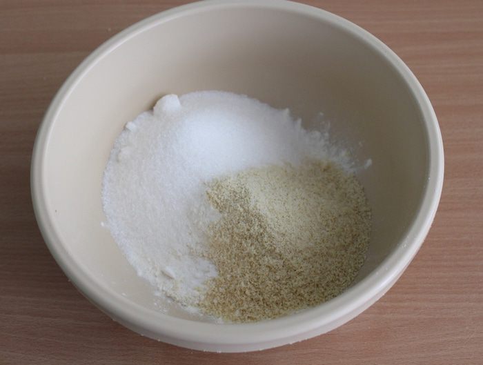 Смешать муку, миндаль, сахар, соду, соль.