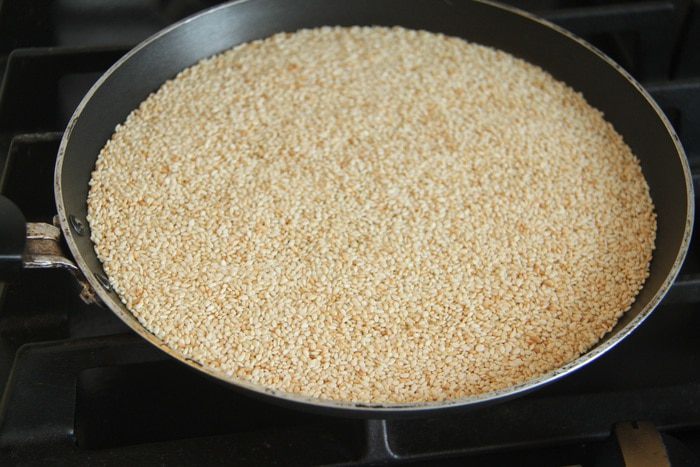 Кунжут слегка обжарить.