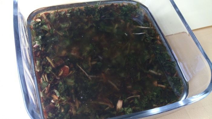 Горячее мясо выложить в маринад. Мясо должно быть полностью покрыто. Оставить минимум на 2 часа.