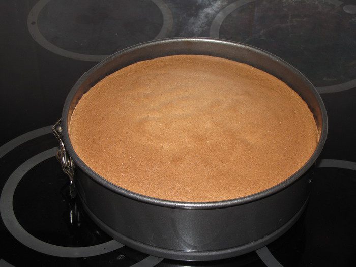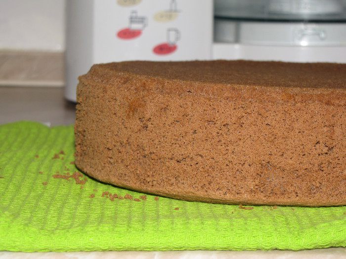 Бисквит нужно оставить в покое на несколько часов, чтобы потом он легко и ровно разрезался.