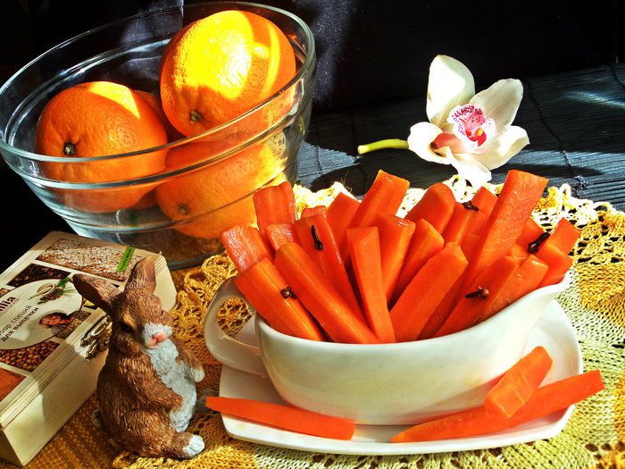 Рецепт из "Книги о вкусной и здоровой пище". Для тех, кто любит погрызть, сидя за компьютером! Или просто перекусить во время поста, когда тянет на сладенькое)) Подаем в теплом виде! Морковка и не вареная и не сырая по вкусу получается, настоящий десерт, вкусный и полезный!