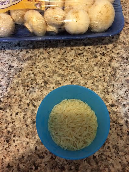 Начинка (грибы): сварить рис.