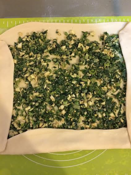 Начика (тархун): я в начинку добавляю 1 шт молодого чеснока, но это дело вкуса, можно и без него. Яйца отварить. Зеленый лук мелко нарезать.