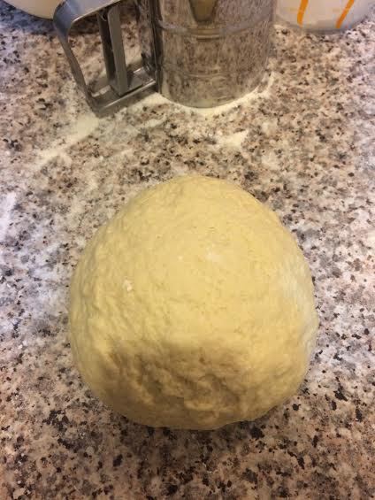 Хорошо вымесить тесто, минут 10. Тесто получется мягкое, но к рукам не липнет. Положить в миску, накрыть пленкой и отправить в холодильник.