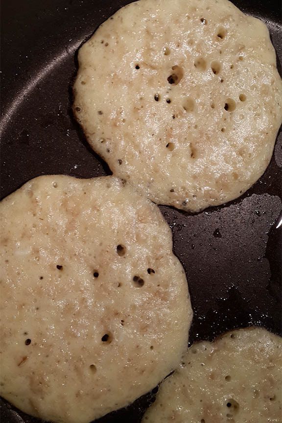 Добавляем соду и можно жарить. При жарке жидкое тесто очень сильно расплывается и поднимается).