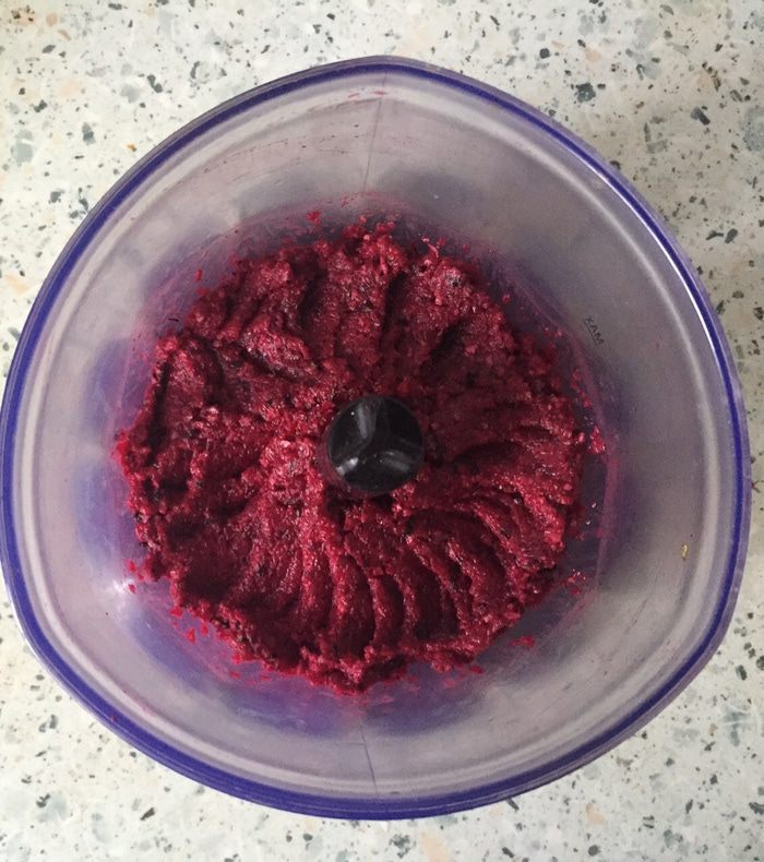 Помещаем все ингредиенты в чашу и перетираем блендером.