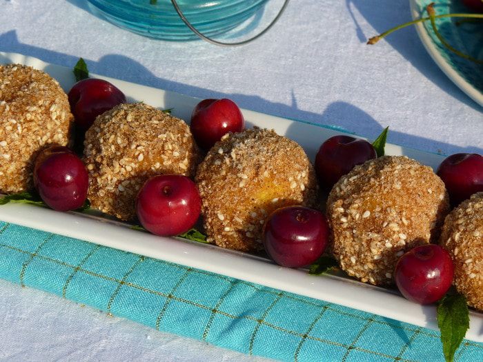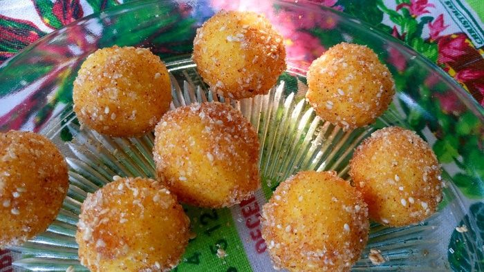 Окунуть в смесь из сухариков и кунжута. Готово! Подавать теплыми, можно со сметаной.