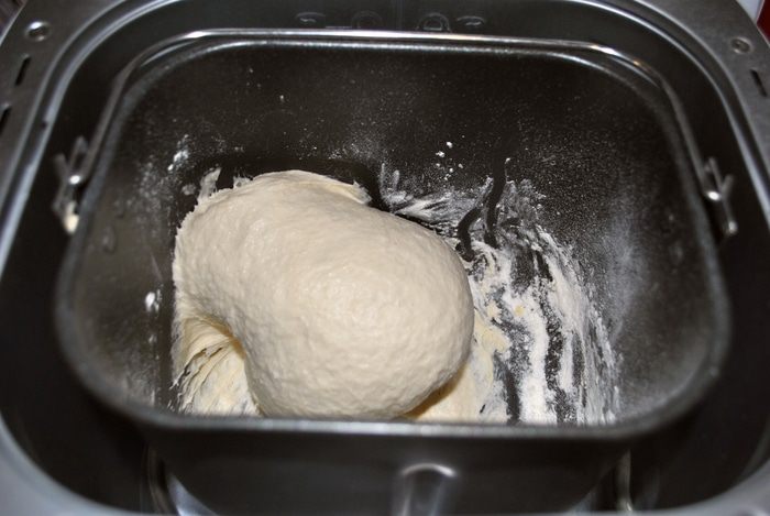 Берем закваску на пике активности, разводим теплой водой, загружаем в ХП. Добавляем масло, мед, соль. Взвешиваем пшеничную муку, но всю сразу не высыпаем, т.к. ее может уйти меньше или больше. Включаем ХП на программу тесто, по окончании программы, дать тесту постоять 1-2 часа до увеличения в 2 раза.