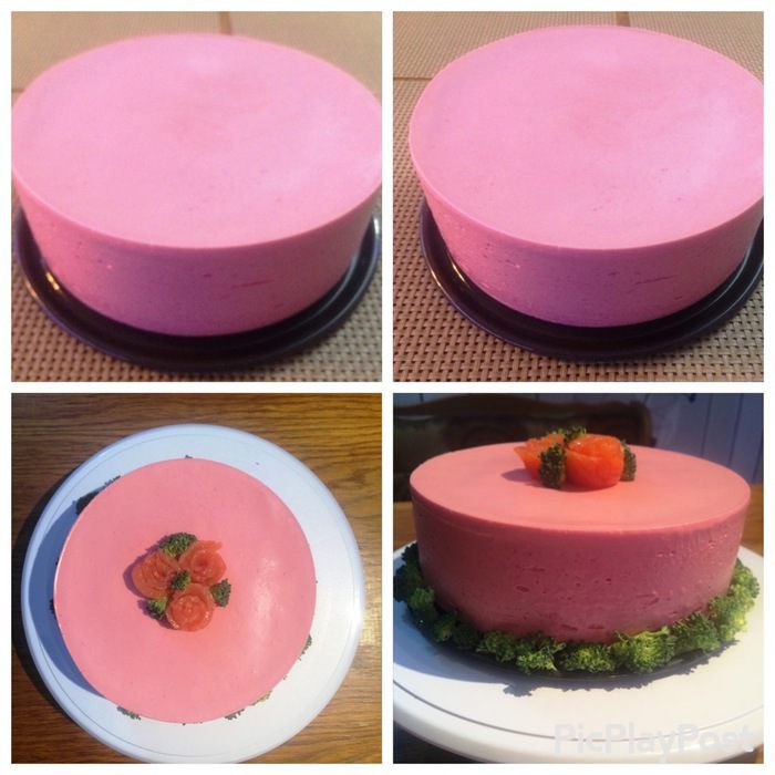 Замачиваем желатин, у меня был листовой, причем цветной, который в итоге придал приятный розовый (девчачий) цвет тортику.