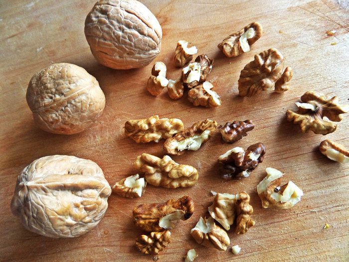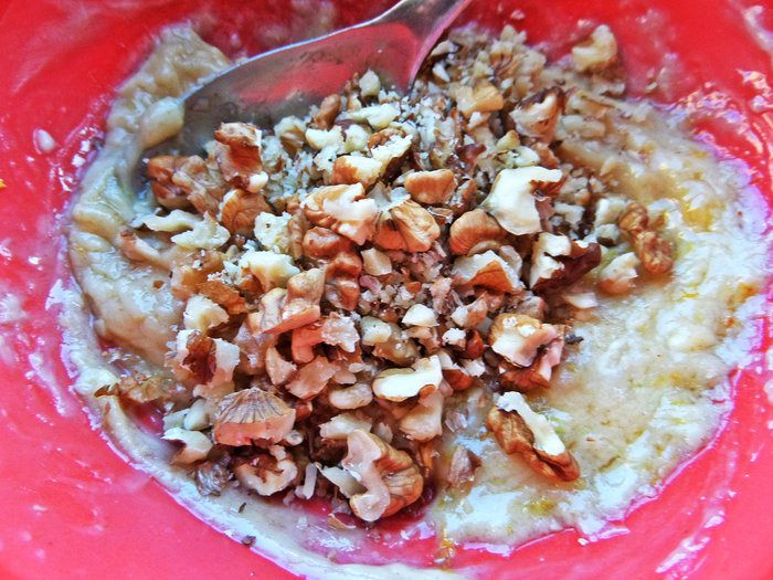 Орехи покрошить мелко.