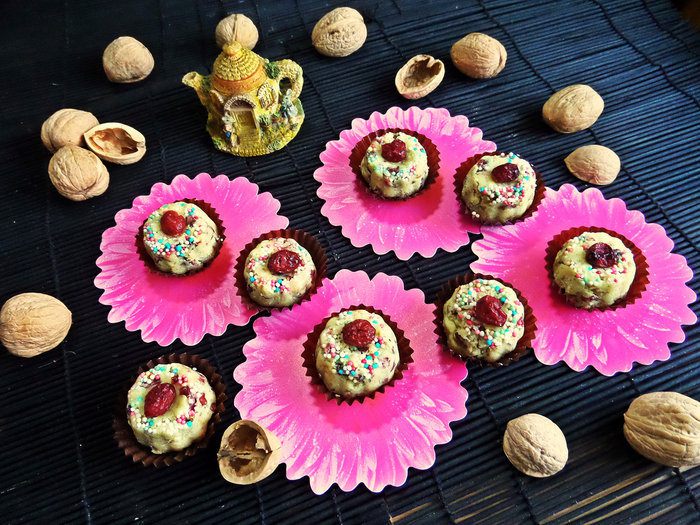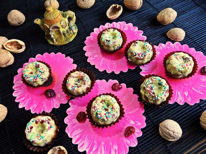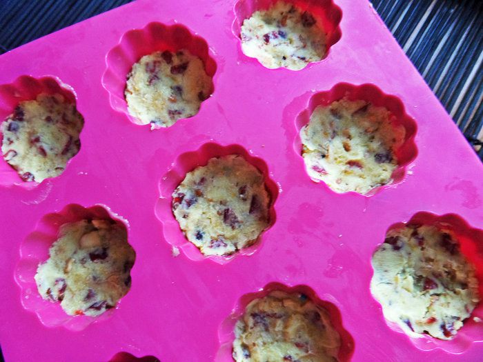 Украсить клюквой, положить в бумажные формочки.