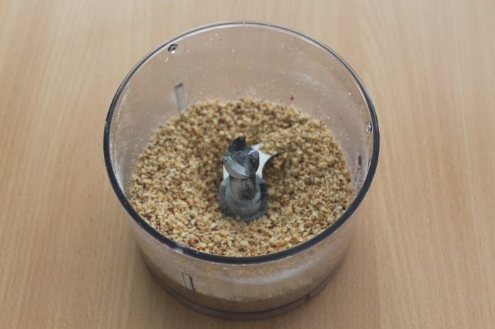 Затем фундук смешать с 2 ст. л. сахарной пудры и аккуратно измельчить блендером. По несколько секунд несколько раз.