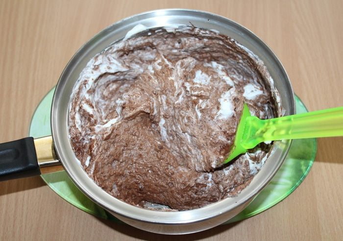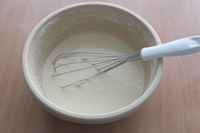 Постепенно добавлять молоко до получения жидкого теста.