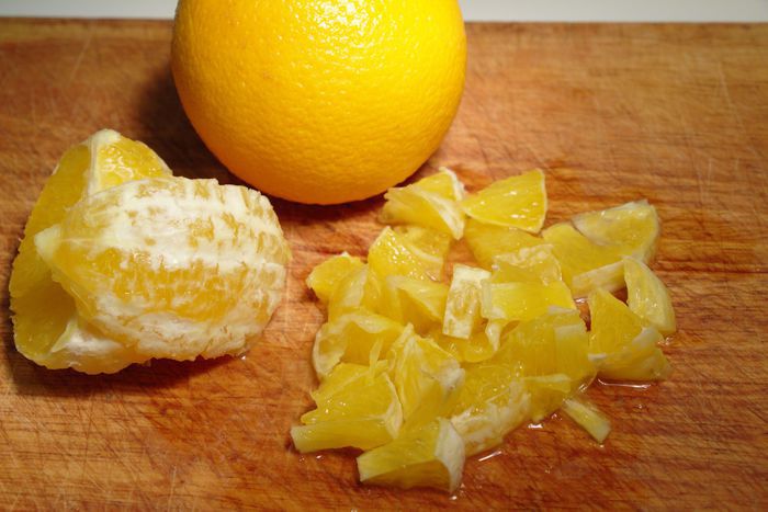 В это время очистим апельсины, режем.