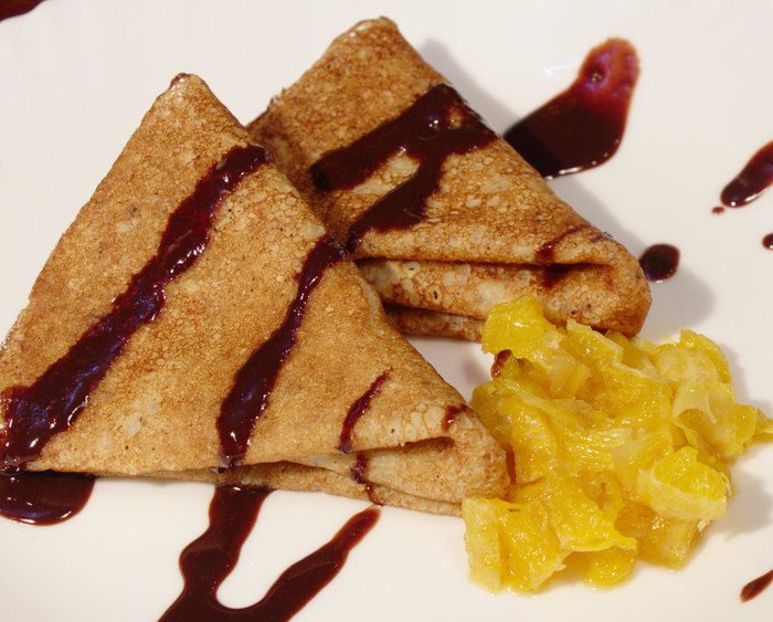 Ореховые блинчики с апельсинами под шоколадным соусом