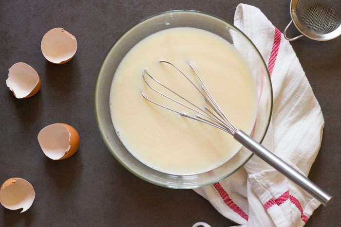 Тесто должно получиться гладким, без комочков. Оставьте на 10 — 15 минут.