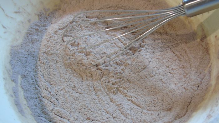 В отдельной емкости смешайте просеянную муку, разрыхлитель, какао, соду, соль и ванилин.