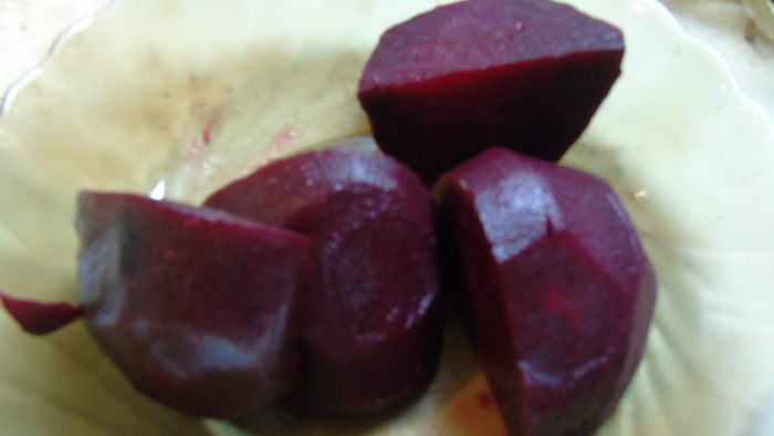 Свеклу отварите и очистите. Или же можете приготовить уже очищенную на пару.