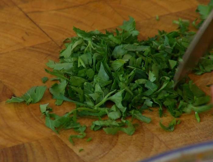 В фарш с сыром влить молоко, добавить вяленые помидоры, петрушку, все перемешать и дать постоять полчаса при комнатной температуре.