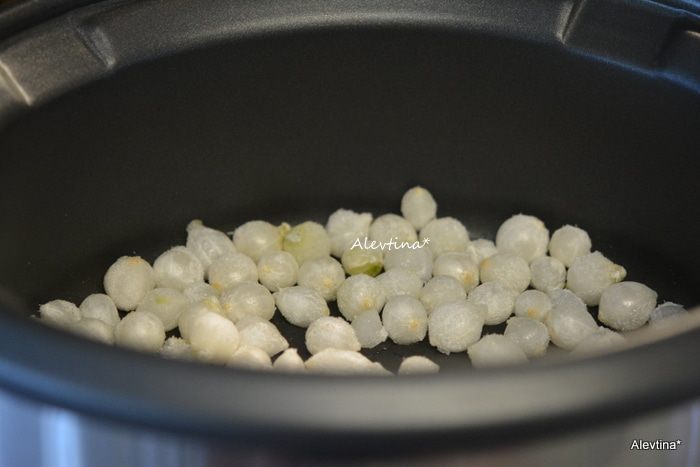 Выложить на дно медленноварки или мультиварки очищенный лук крупный, нарезанный крупными дольками. У меня был только жемчужный лук на тот момент.