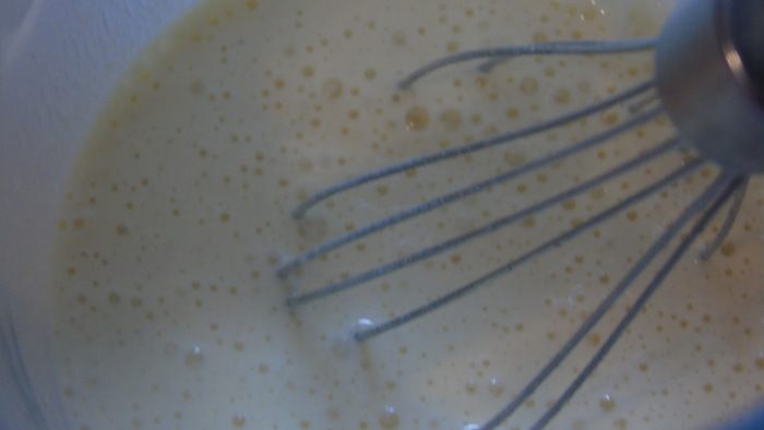 Все взбиваем венчиком... в конце вливаем растительное масло, пару секунд еще взбиваем.
