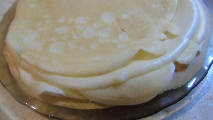 Пережариваем так все блины и складываем стопочкой.