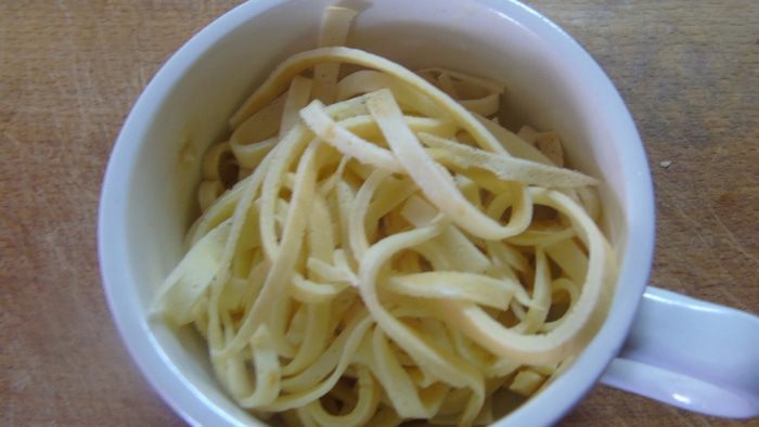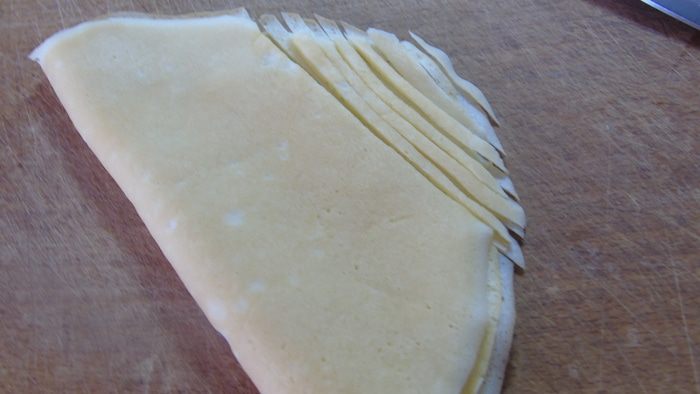 Блины складываем вдвое и нарезаем как лапшу.
