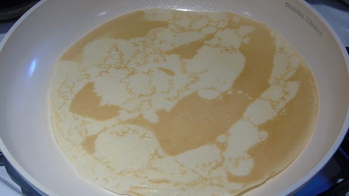 Жарим блины на хорошо разогретой сковороде.