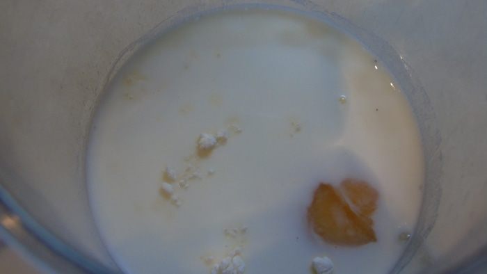 В чашу блендера или просто в миску засыпаем все продукты для блинов, кроме масла.