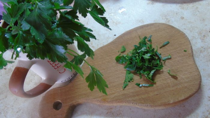 Зелень любую по вашему вкусу измельчаем, у меня петрушка.
