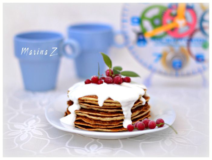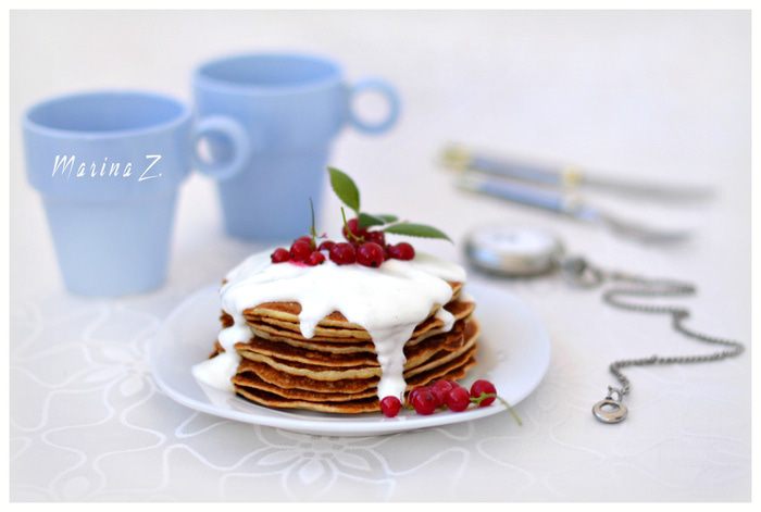 Для соуса соединить сметану с сахаром, слегка взбить венчиком. Украсить ягодами. Приятного аппетита!
