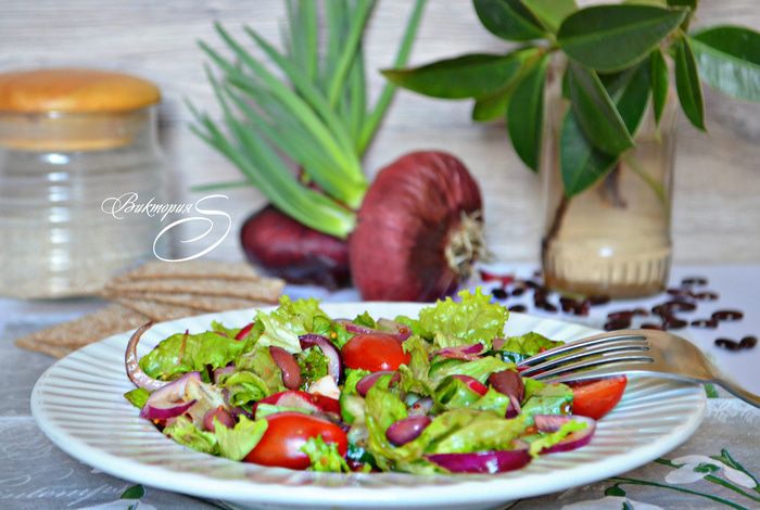 Весна — самое время подкрепить наш организм витаминами! Приготовьте этот незатейливый, но вкусный и полезный салатик из свежих овощей. Фасоль придаёт ему сытость и питательность, а пикантная заправка прекрасно дополнит салат и придаст яркий вкус.