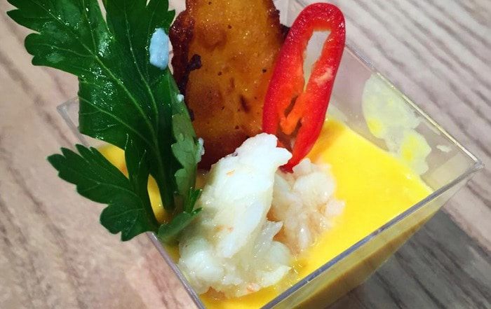 Краб с пикантным пюре из тыквы и медовым тыквенным чипсом