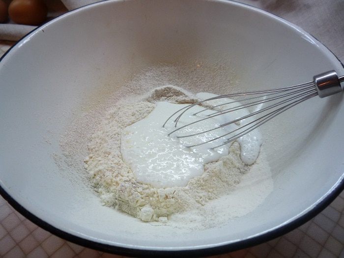 Вливаем немного простокваши и взбиваем на маленькой скорости.