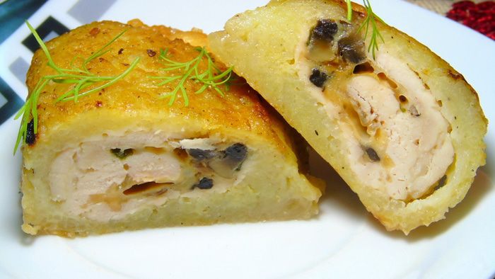 Начинку выкладываем на филе, заворачиваем.