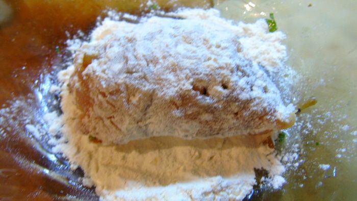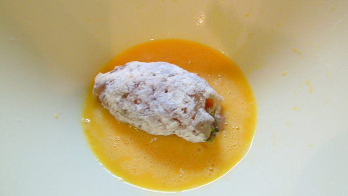 Котлету обваливаем в муке.