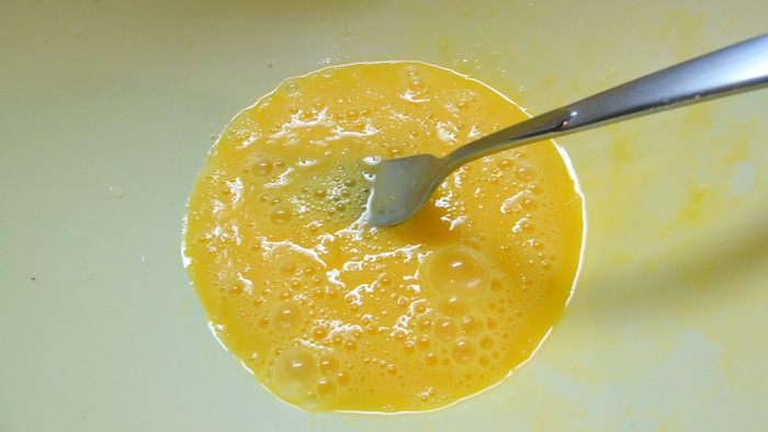 Яйца слегка взбейте вилкой.