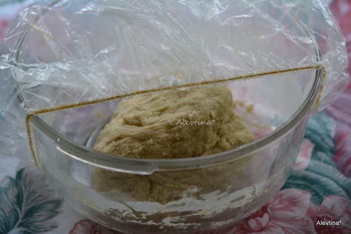 Шар накрыть пленкой и поставить в теплое место на 1 час (у меня вышло из-за текущих дел на 3 часа). Тесто увеличится за это время в 2 раза.