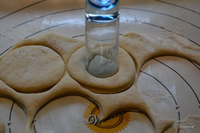 Не страшно что у вас нет специальных формочек для пончиков. Можно использовать стакан и горлышко бутылки или рюмки. Вырезать сначала крупные круги.