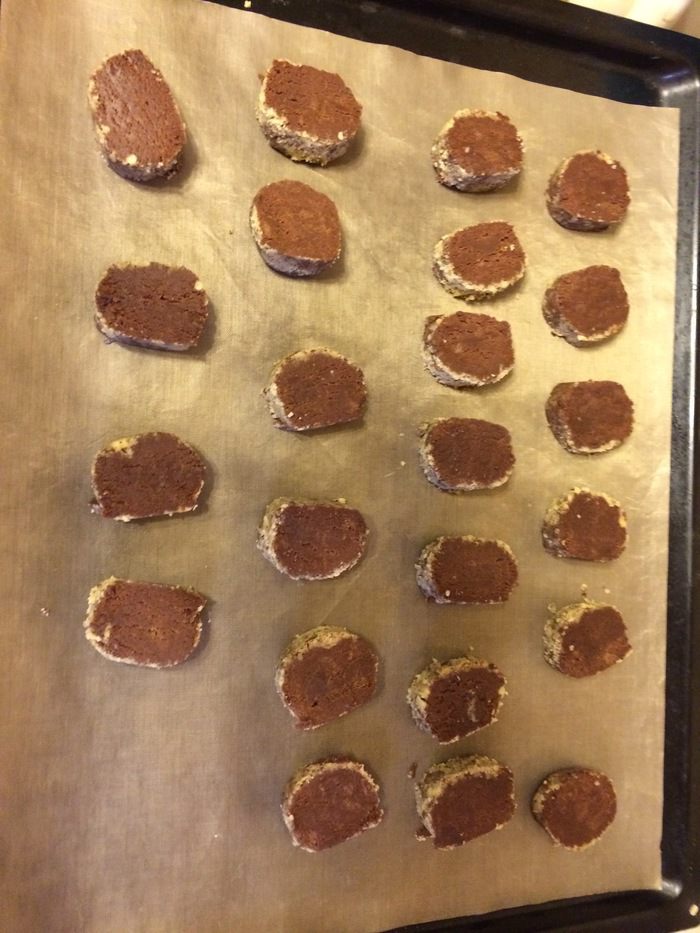Достаем наше тесто, нарезаем шайбочки выпекаем при 180°C в заранее разогретой духовке 15 минут.