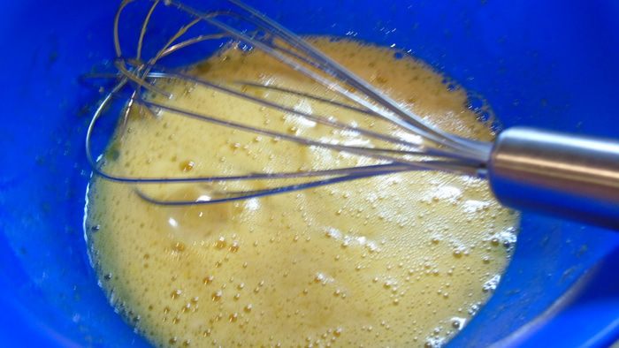 Яйца взбейте венчиком с сахаром.