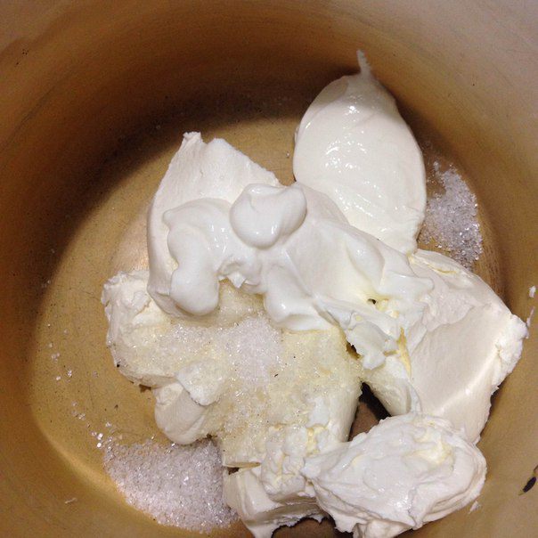 Ягоды положить на теплую сковороду с маслом, насыпать сахар, и у меня осталась от предыдущих десертов веточка ванили без семян и я ее тоже туда положила.