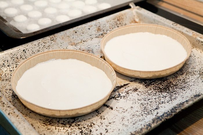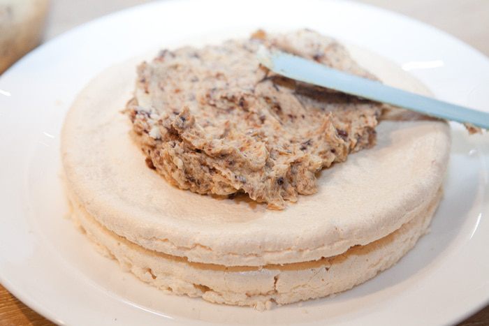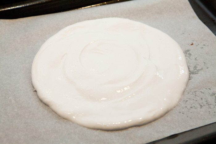 Готовим безе. Яйца должны быть комнатной температуры. Отделяем белки от желтков, желтки нам не понадобятся. Миксером на медленной скорости начинаем взбивать белки. Когда появится белая пена, добавляем щепотку соли и продолжаем взбивать до жестких пиков. Затем постепенно вводим сахарный песок и ванилин (или ванильный сахар). Очень важно после каждого добавления сахара взбивать белки 2-3 минуты. Масса становится более плотной и может чуть осесть. Как только сахар растворился, готово. Главное не переусердствовать, иначе масса опадёт.