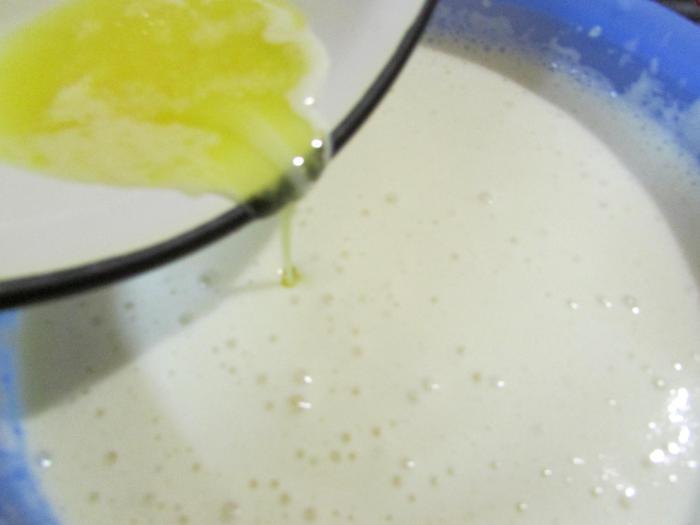 Влить растопленное сливочное масло.