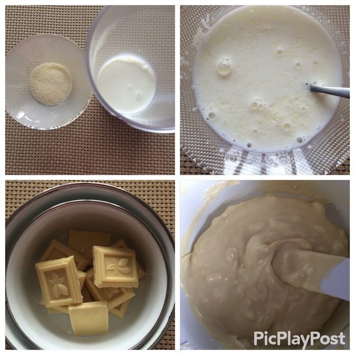 Набухший желатин ставим на водяную баню и даем ему полностью раствориться, не доводим до кипения.
