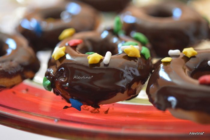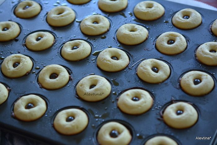 Готовые пончики достать из духовки. Дать остыть в форме, затем перевернуть.