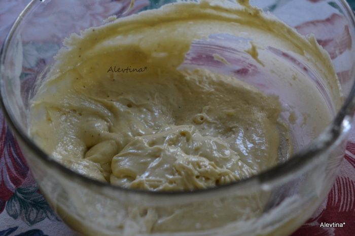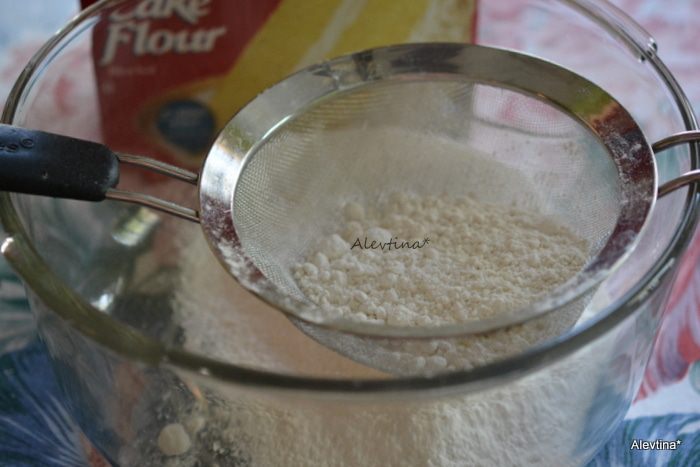 Муку тортовую просеять с разрыхлителем и солью, добавить мускатный орех.
