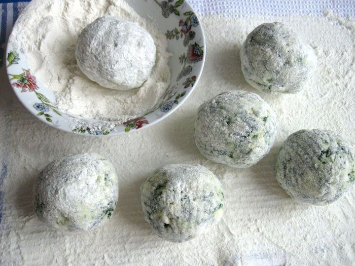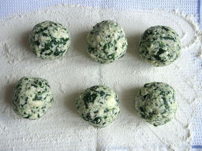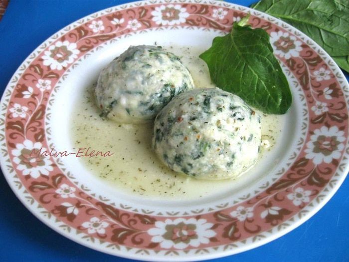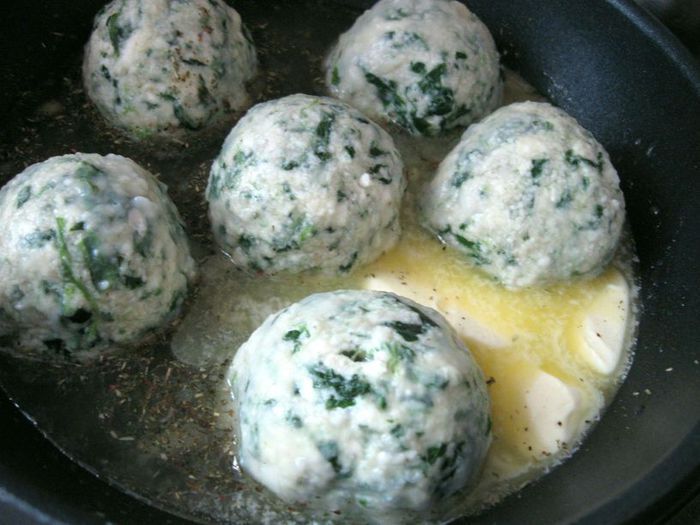 И сразу переложить на сковороду, в которую налит бульон, положено сливочное масло, специи и сухие травы (у меня здесь смесь итальянских трав, о ее составе пишу в комментарии). Подержать на сковороде клецки на небольшом огне 3 минуты, поливая соусом со сковороды.