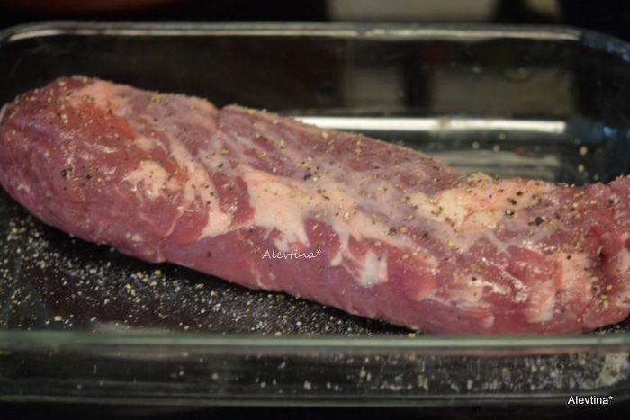 Свиную вырезку посолить и поперчить. Духовку разогреть на 180°C.