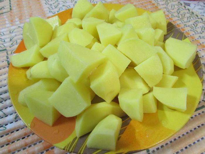 Картофель помыть, очистить и нарезать крупным кубиком.